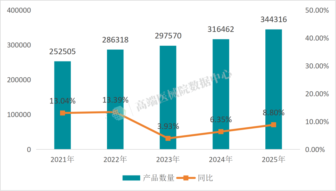 2025年全国医疗器械产品达344316件,同比增长8.8%