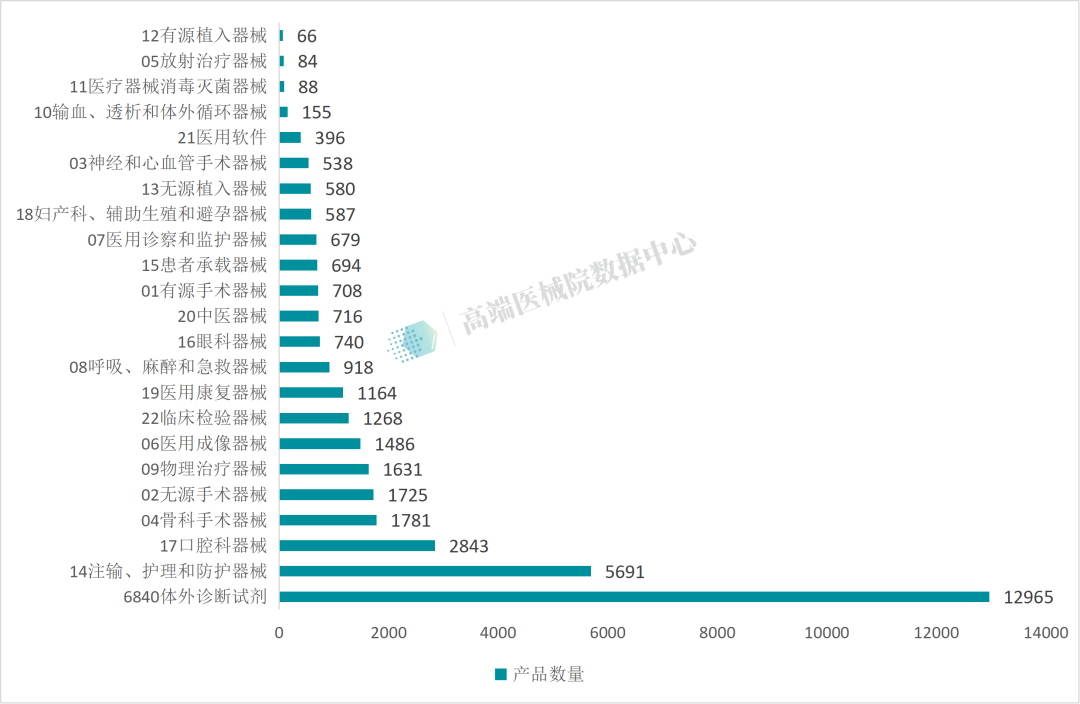 从产品大类维度看,体外诊断试剂以12965 件的数量居首(占比 34.6%),但同比下滑 9.06%;输注、护理和防护器械(5691 件)、口腔种植体器械(2843 件)等主流品类同步走弱,同比分别下降 13.72%、3.53%,呈现 “规模靠前但增速回落” 的特征。