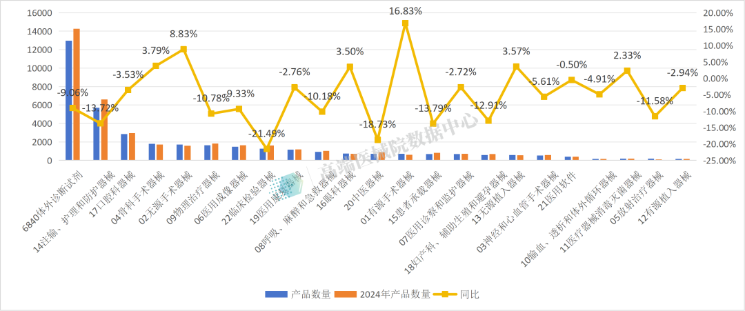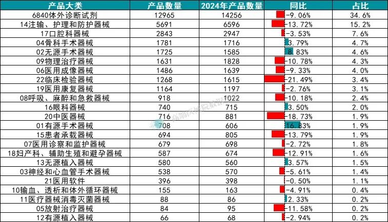 图表4:2024&2025年全国各类医疗器械产品数量同比情况