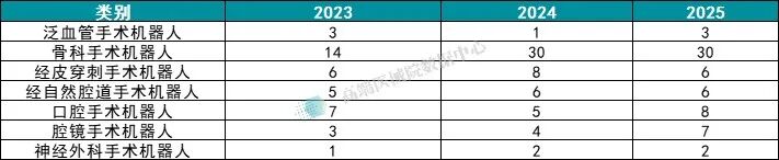 泛血管、经皮穿刺等品类虽有小幅波动,但整体布局稳定,印证高端手术机器人领域近年的“持续突破” 态势。